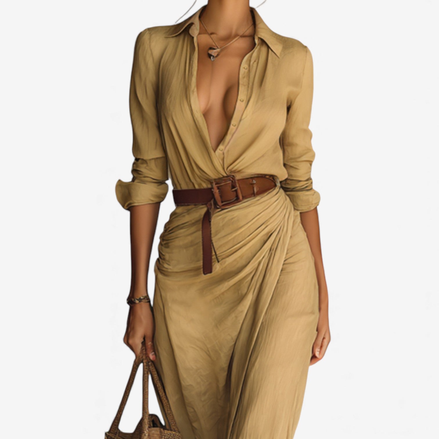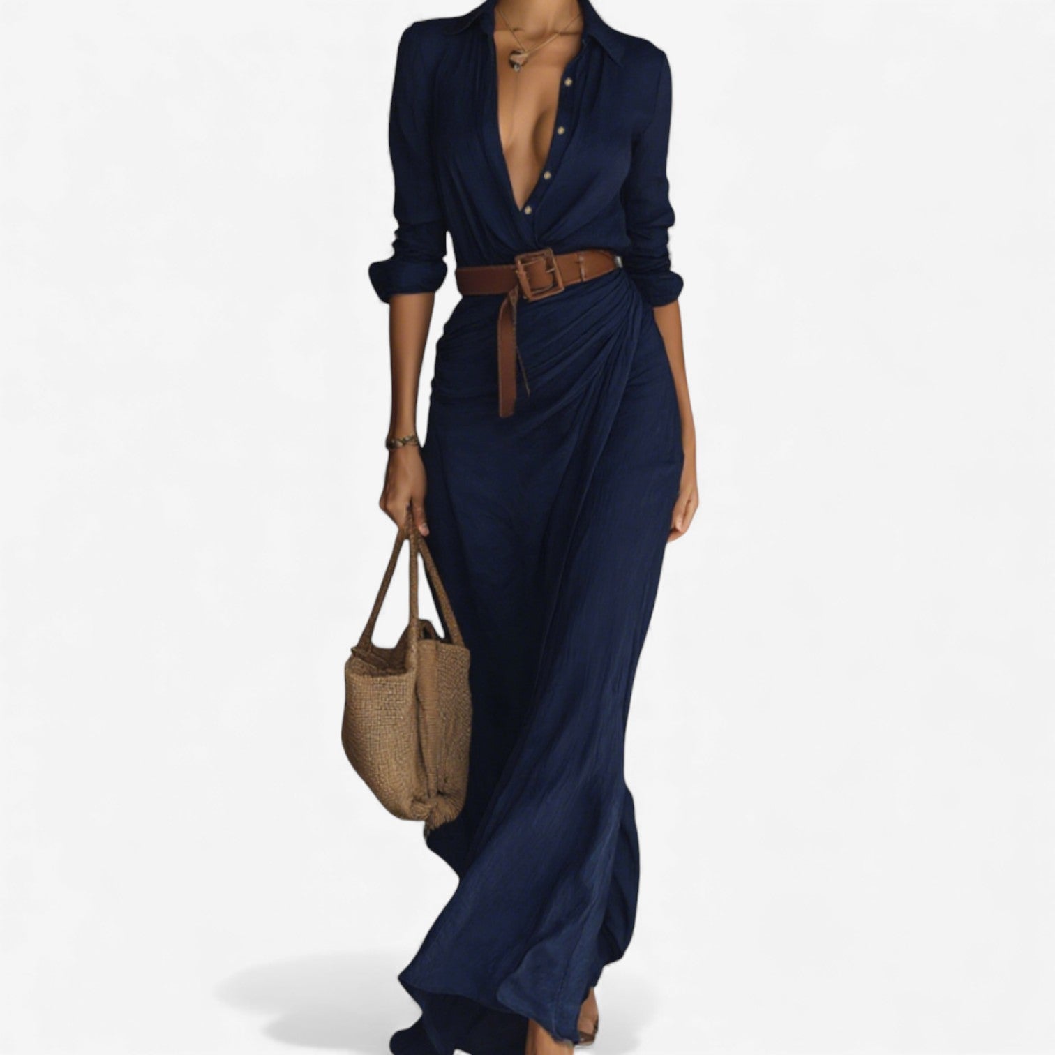 Ana™ es un vestido largo, suave y ligero, diseñado para una elegancia relajada y un movimiento relajado. El top camisero aporta estructura, mientras que el efecto drapeado en la cintura crea una silueta naturalmente favorecedora. Perfecto para días cálidos, salidas a la costa o momentos informales donde buscas comodidad con un acabado refinado.