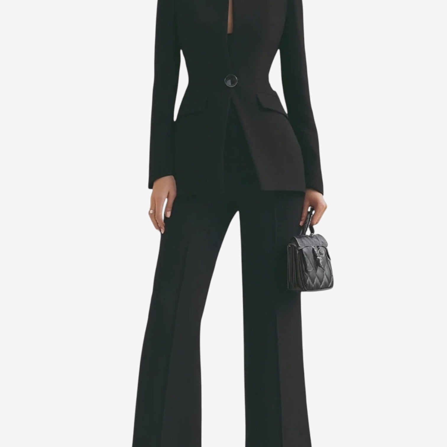 Ángela™ es un refinado conjunto de traje pantalón a medida que aporta una confianza refinada y una elegancia moderna a tu armario. La chaqueta blazer estructurada, combinada con pantalones acampanados de cintura alta, crea una silueta estilizada, perfecta para reuniones de negocios, brunchs con estilo o veladas sofisticadas. Las líneas limpias y el corte minimalista garantizan un traje atemporal y versátil, ideal tanto para combinarlo con tacones para un look formal como con mocasines para un look más relajado. Con Ángela™, consigues un look impactante y chic sin esfuerzo.
